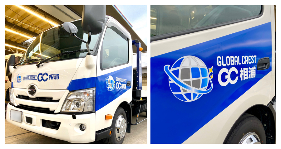 「GLOBAL CREST GC相浦」様のカーマーキングを行いました。マーキング・フィルムとインクジェットの組み合わせです。