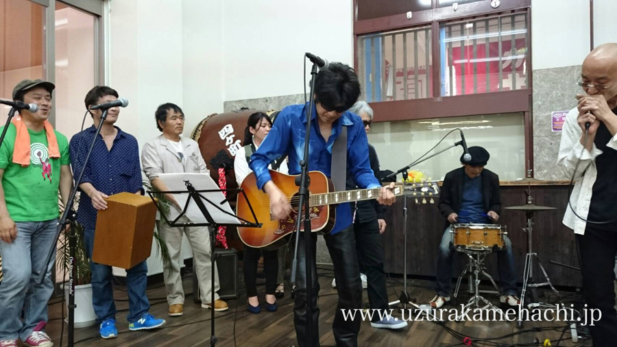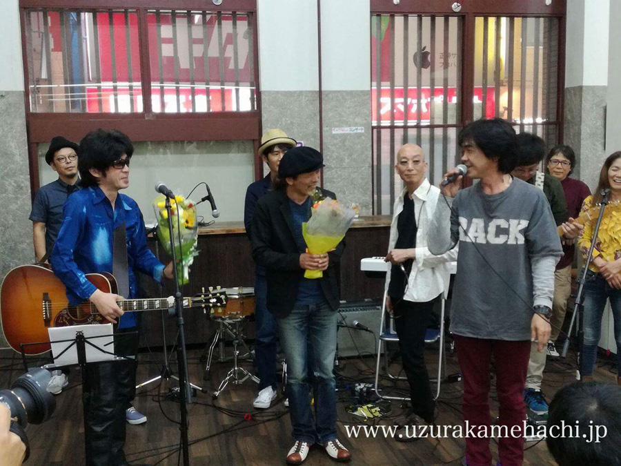 最後は、うずらかめはちと出演者がステージに集合。音食亭Brownieのター坊さんの挨拶の後、サプライズとしてSMJPの中山孝典が登場。花束を頂きました!