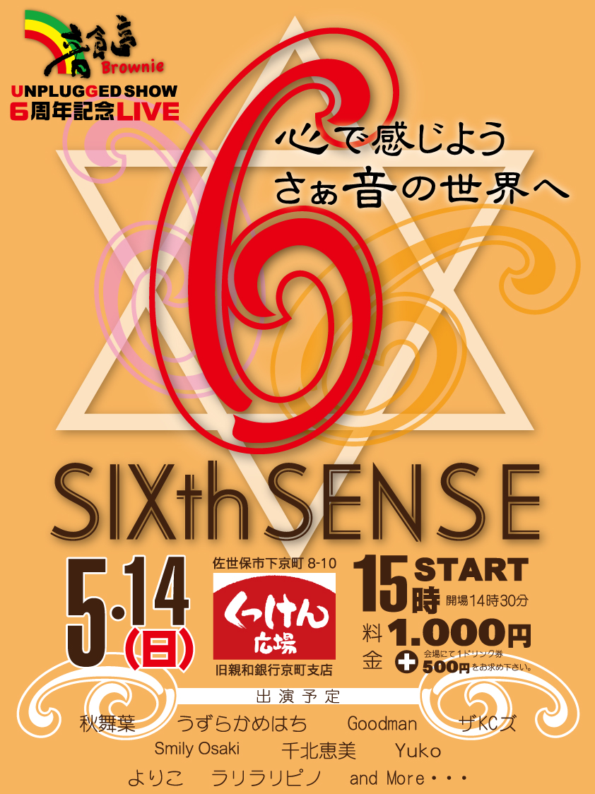 「音食亭Brownie UNPLUGGED SHOW 6周年記念LIVE SIXth SENSE 心で感じよう さぁ音の世界へ」